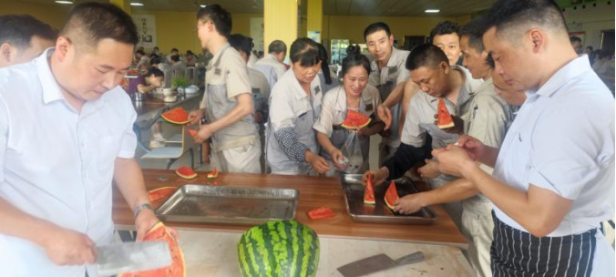 在發(fā)放現(xiàn)場(chǎng),公司相關(guān)負(fù)責(zé)人親自將防暑物資一一送到員工手中,叮囑大家在高溫天氣下一定要注意防暑降溫,合理安排工作時(shí)間,確保自身安全與健康。同時(shí),強(qiáng)調(diào)各部門(mén)負(fù)責(zé)人要時(shí)刻關(guān)注員工的身體狀況,在保障工作正常開(kāi)展的前提下,靈活調(diào)整工作安排,避免員工長(zhǎng)時(shí)間在高溫環(huán)境下作業(yè)。在食堂,公司定時(shí)定點(diǎn)的安排人員,合理有序的為員工發(fā)放切好的西瓜。