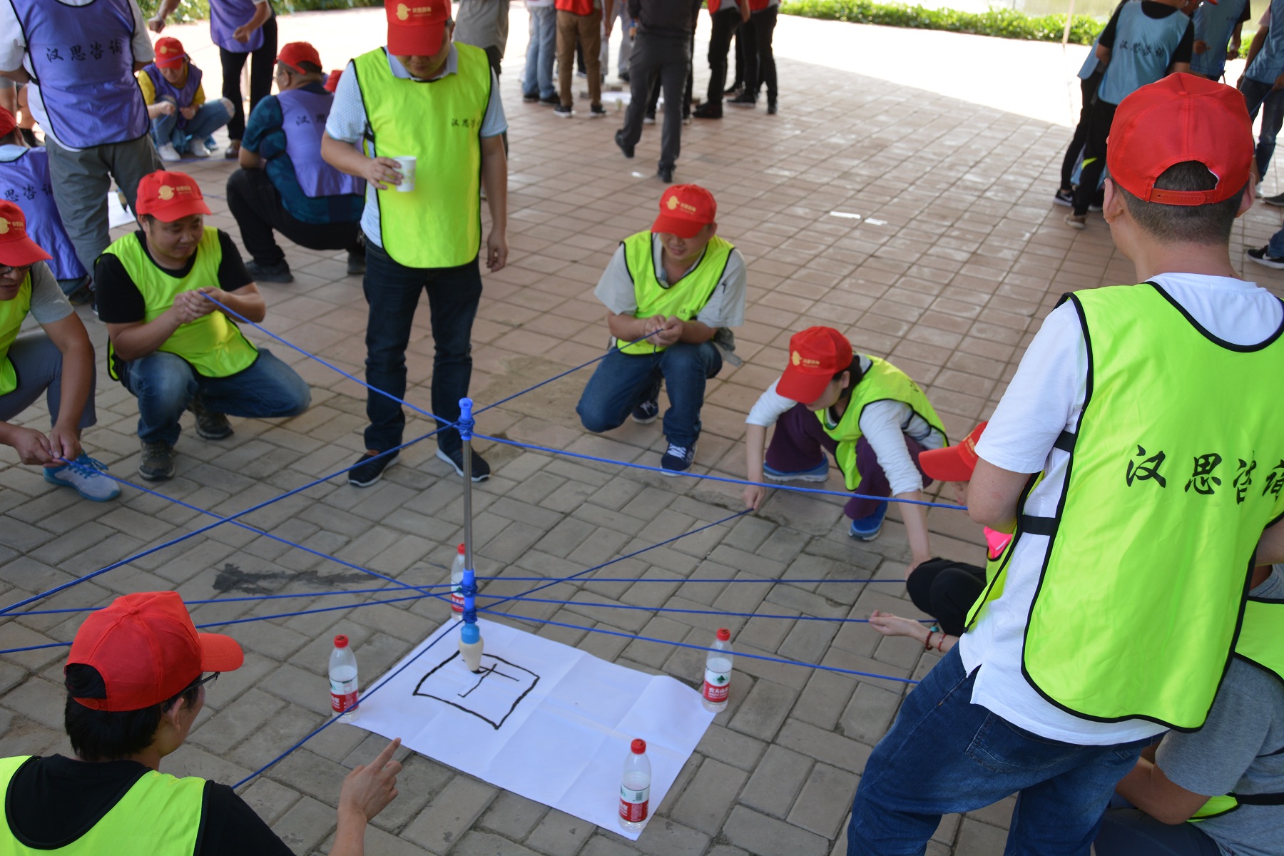 “一個巴掌拍不響,一根筷子易折斷”,妙筆生花活動充分說明了團隊成員之間協作的重要性。12名團隊成員各拉著一根繩子的末端,彼此配合,彼此提醒,同心協力寫出了“團隊”二字。