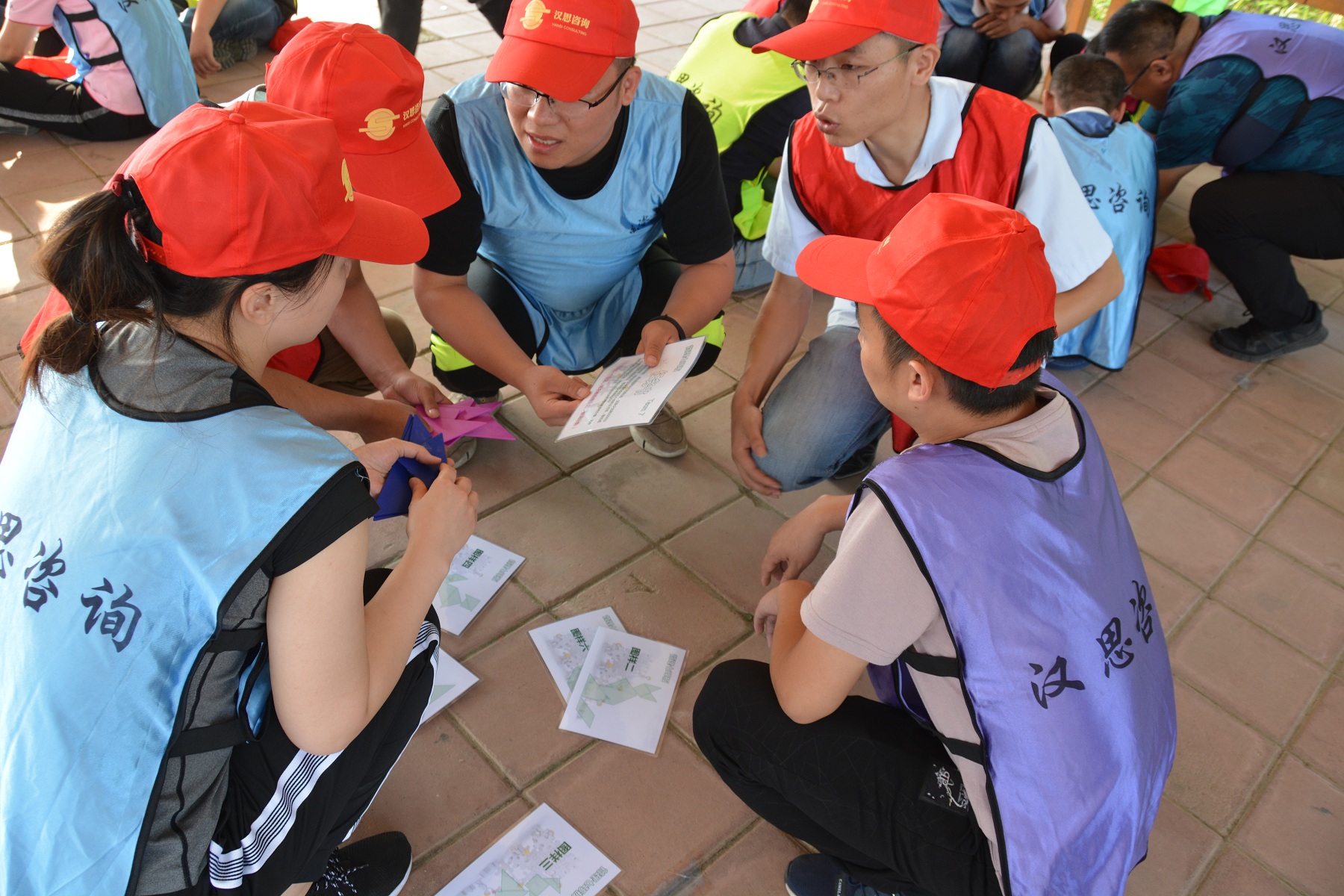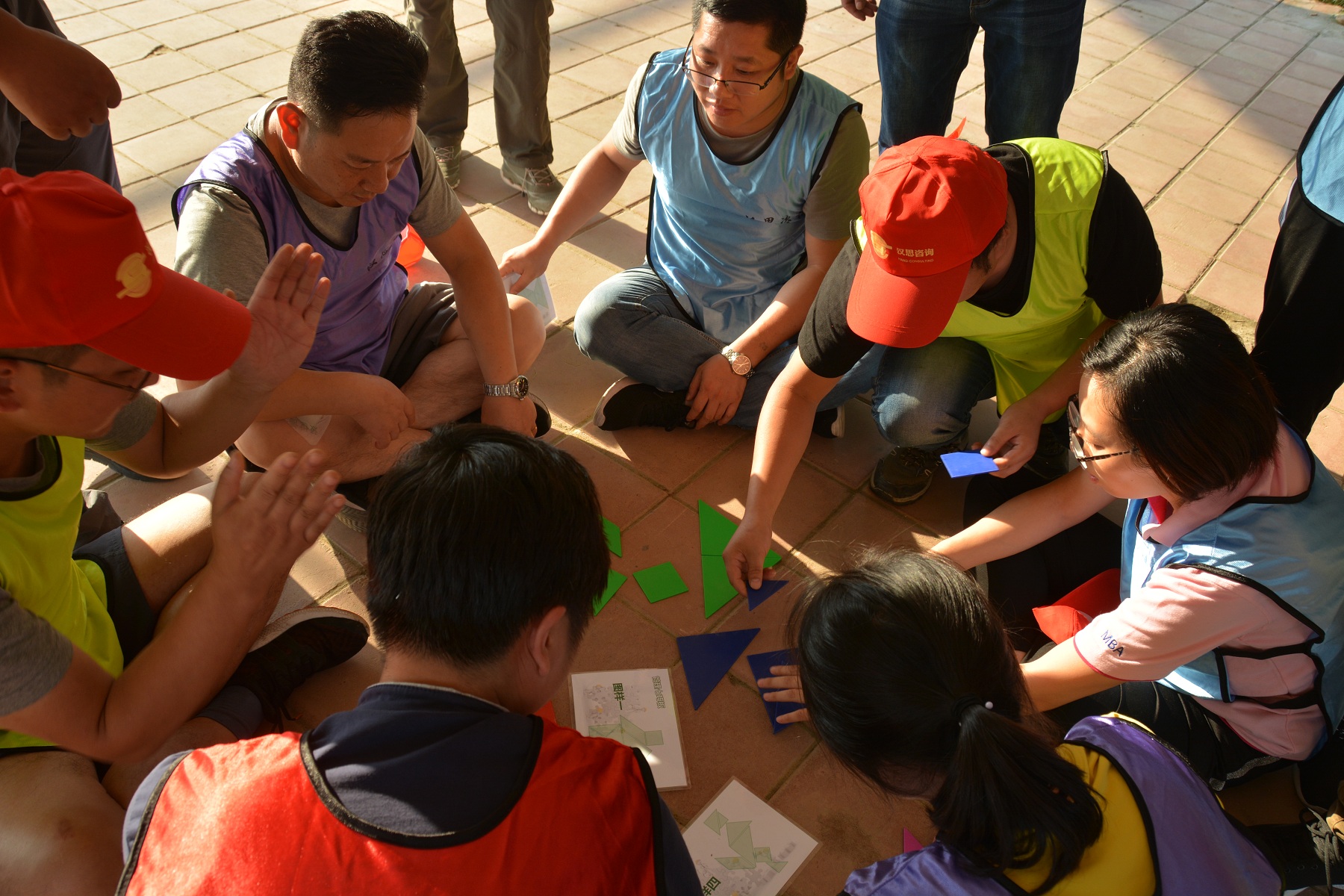 鑒于此次活動的參與人員跨部門、跨專業、跨層級,為保證所有人員的迅速融入,在隨機分成4組后,進行了“解手環”等兩個簡單活動的預熱,讓小組成員之間迅速的熟悉起來,為后續的團隊組建及文化展示奠定了良好的基礎。4組隊伍在創建團隊隊名、口號、隊標及基本隊伍操練后,進行了士氣昂揚的團隊展示。