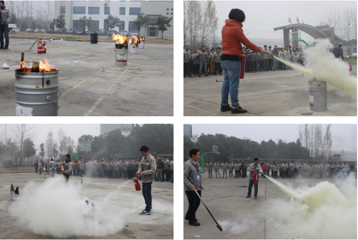現場模擬了幾個著火點,當發生火情時,員工們拿著滅火器按照講解的操作流程與滅火方法對火源進行噴射、滅火。