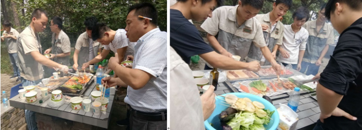 按照此次活動的預先安排 10:00部門人員在園內燒烤點集合,組織趣味燒烤大比拼。大家開始分工起來,擇菜的擇菜,配料的配料,各司其職,各組大廚紛紛閃亮登場,一較高下,好不熱鬧……